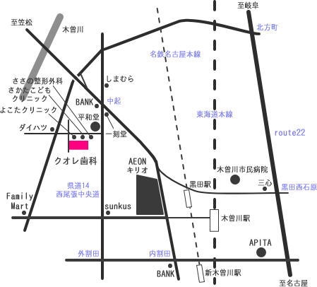木曽川キリオ西、マクドナルド、らーめん一刻堂、平和堂南西を目印にお越しください。